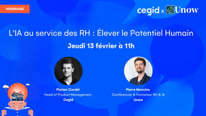 Pour mieux comprendre ces enjeux et découvrir des cas concrets d’application de l’IA en RH, Cegid et Unow vous invitent à un webinaire exclusif le jeudi 13 février à 11h.