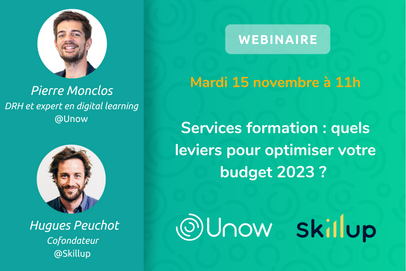 Le 15 novembre à 11h, Unow s’associe à Skillup pour faire le point sur les bonnes pratiques et retours d’expériences pour optimiser son budget formation.