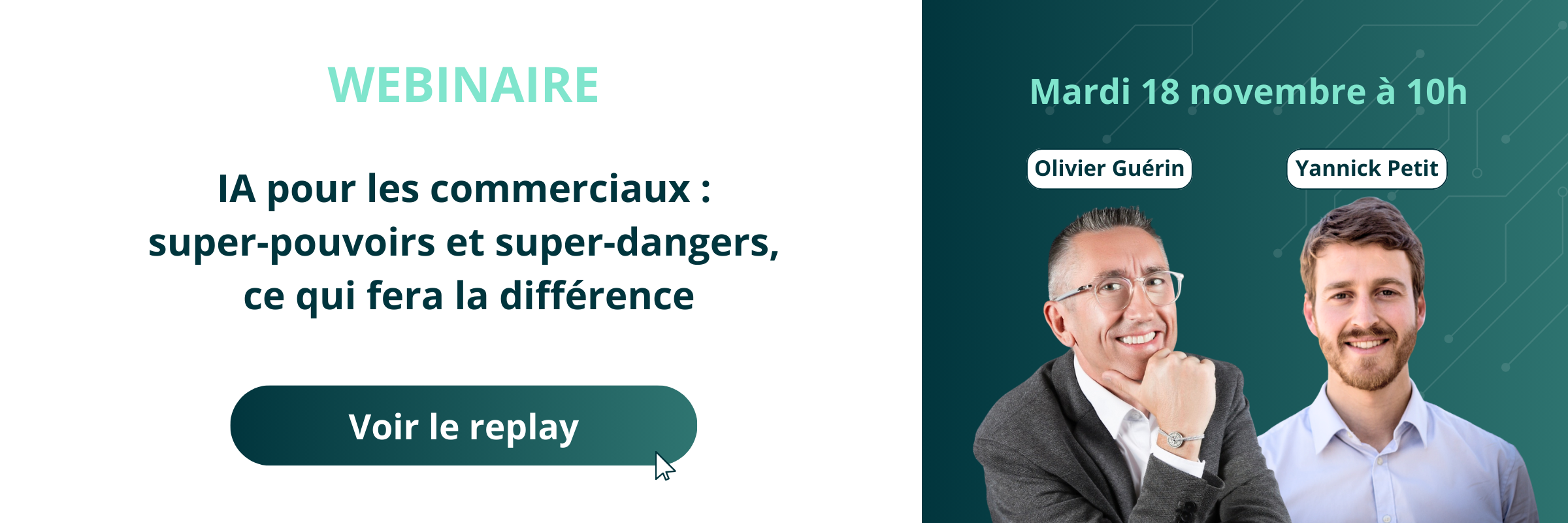 Ces questions ont été largement abordées lors du webinaire « IA pour les commerciaux : super-pouvoirs et super-dangers, ce qui fera la différence », animé par Yannick Petit, CEO de Unow et formateur en intelligence artificielle, et Olivier Guérin, commercial, formateur et coach avec plus de 25 ans d’expérience.