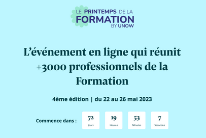 Le printemps de la Formation revient pour sa 4e édition qui aura lieu du 22 au 26 mai 2023 ! Cet événement 100 % en ligne organisé par Unow réunit chaque année plus de 3000 professionnels de la formation.