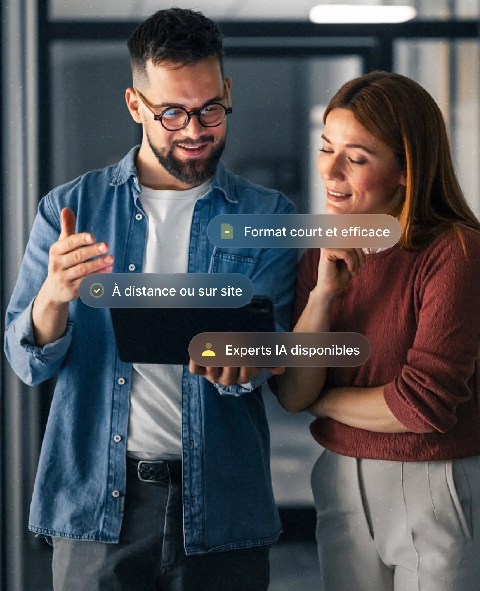 Flexibilité totale : sur site ou à distance, adapté à vos contraintes.