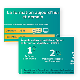 Quelle répartition entre les modalités de formation en 2022 ? Quels seront les enjeux prioritaires pour la formation digitale dans le futur ?